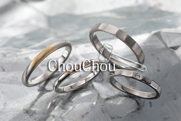 chouchouのブライダルリングは、職人の手により一つ一つ時間をかけて仕上げていきます。その日の温度や木槌で叩く力加減。量産品でない手作りのリングは、ひとつひとつに違いが出てきます。素材そのものの性質や、個性を大切にchouchouはそんな作り手のぬくもりを感じる事の出来るブライダルリングです。一見、シンプルなデザインですが、そこには本来の結婚指輪のはめかたである日常に馴染むように。という作り手から使い手への幸せの願いが込められています。