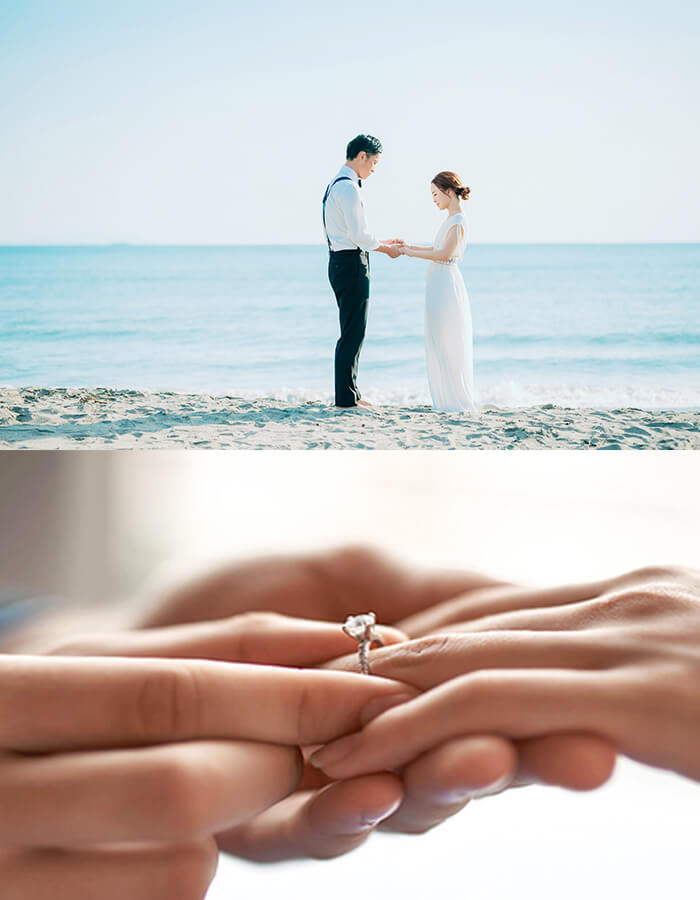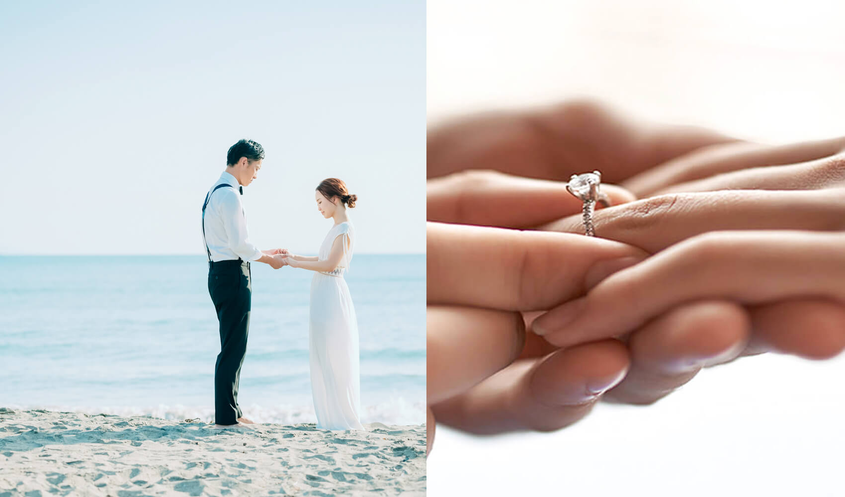 婚約期間中は1本で着けて頂き、結婚後に結婚指輪との重ね付けをされる方が増えております。記念日などの特別な日、お出かけの際は結婚指輪の上に婚約指輪を重ねて頂き、素敵な時間をお過ごしください!